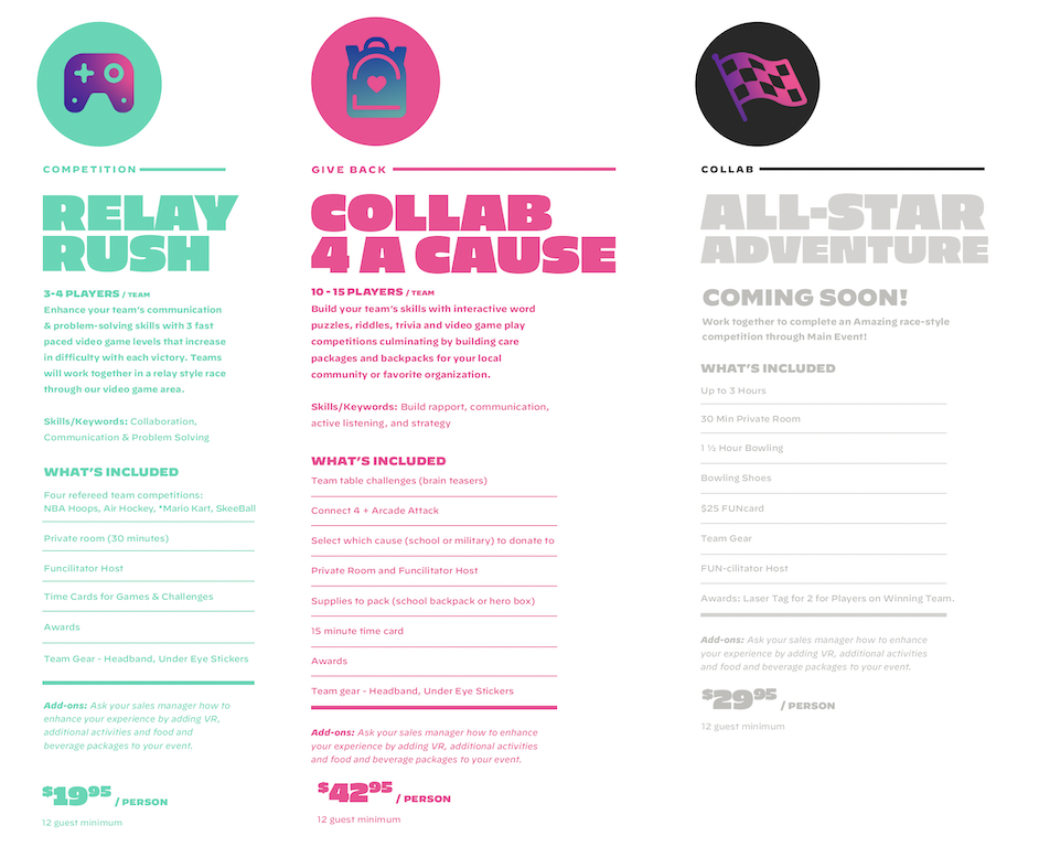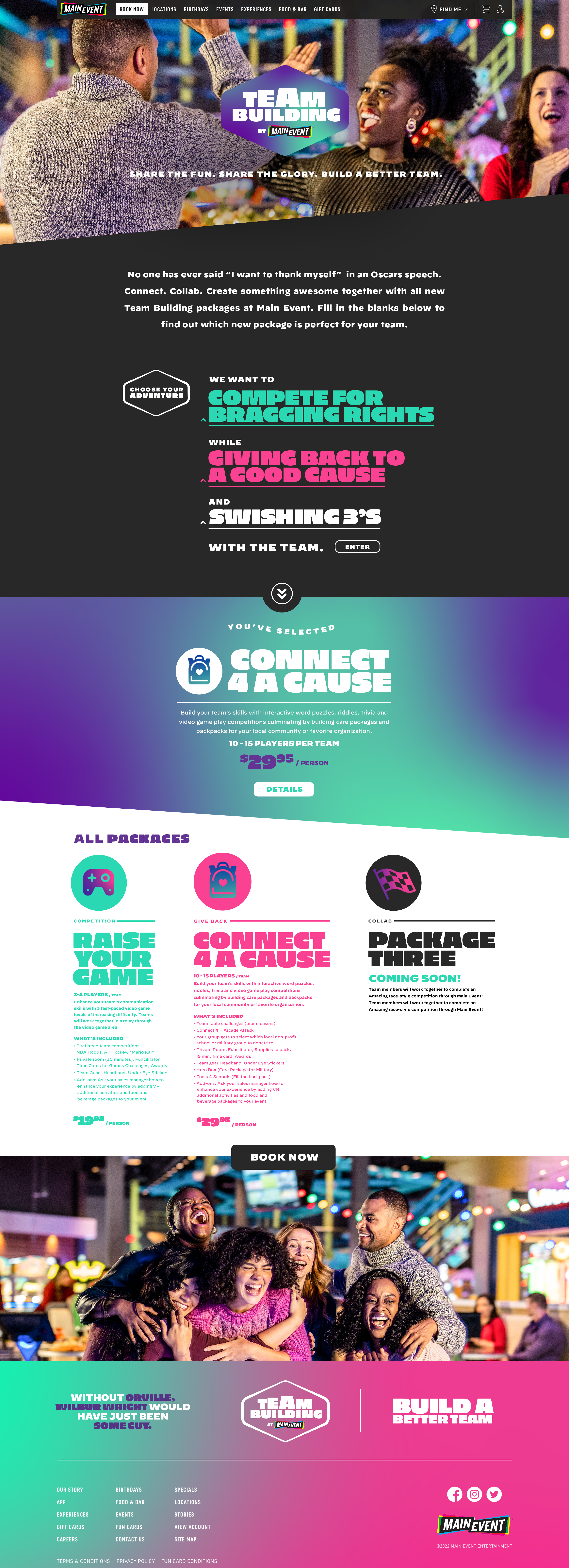 When Main Event launched its new corporate team building packages, they wanted a fun and fresh marketing campaign that showed the benefits of teamwork. We delivered a variety of assets created to highlight the collaboration and skill development include in each new package, and positioned Main Event as the premier team building destination.